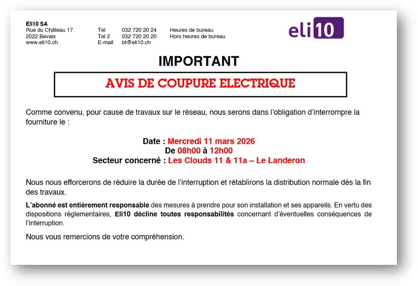 Renseignements avis de coupures eli10